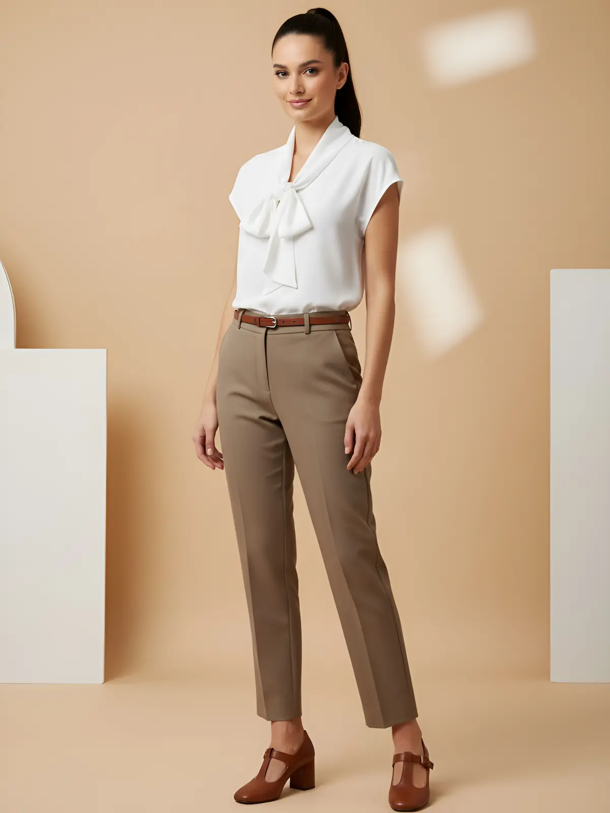 A refined, tailored women’s reception suit designed for a polished and professional front-desk appearance. The blazer features clean lines, a single-button closure, and structured shoulders for an elegant silhouette. The matching trousers offer a slim, modern fit that enhances comfort and movement throughout the workday. Ideal for premium hotels and resorts seeking a sophisticated, contemporary uniform aesthetic.